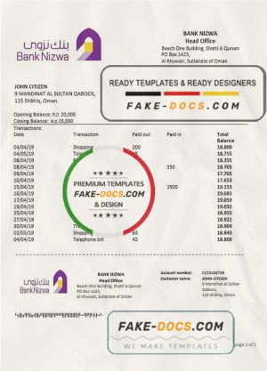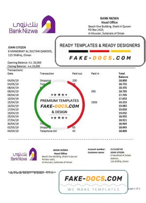 Oman Bank Nizwa proof of address bank statement template in Word and PDF format