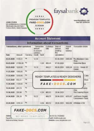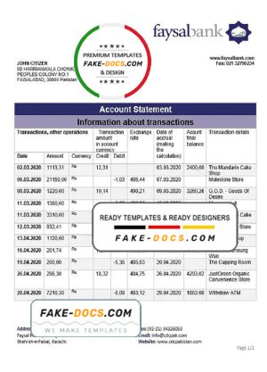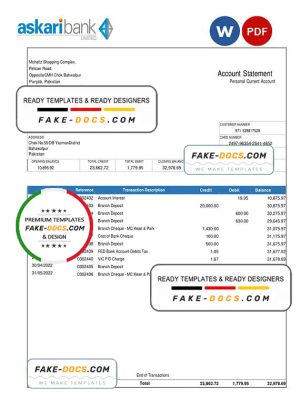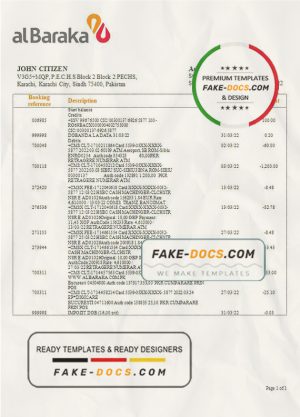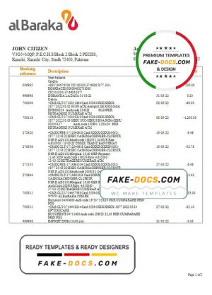 Pakistan Al Baraka bank statement template in Word and PDF format
