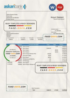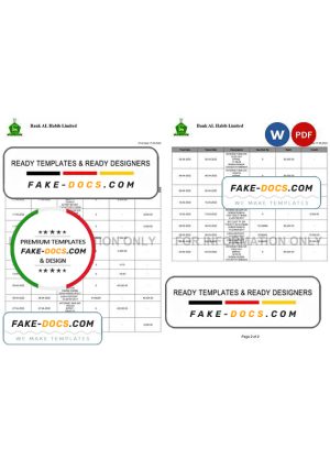 Pakistan Bank Al Habib bank statement, Word and PDF template, 2 pages