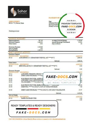 Oman Sohar International bank proof of address bank statement template in Word and PDF format
