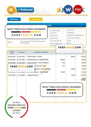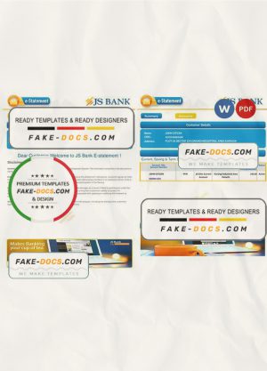 Pakistan JS bank e-statement, Word and PDF template, 3 pages