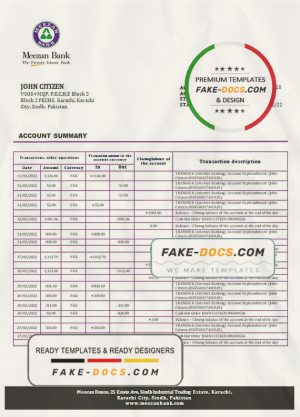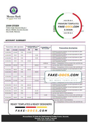 Pakistan Meezan bank statement Word and PDF template, 2 pages
