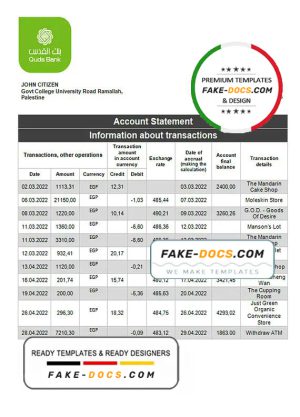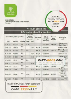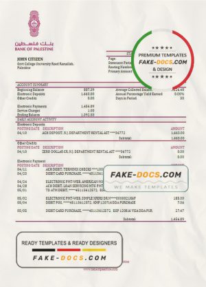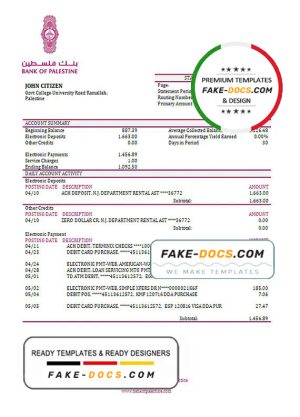 Palestine Bank of Palestine bank statement template in Word and PDF format
