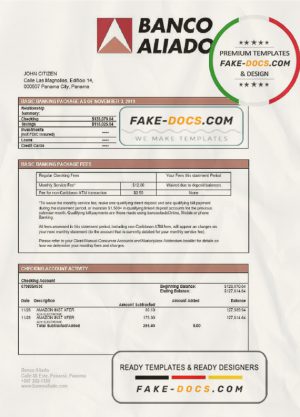 Panama Banco Aliado bank statement template, Word and PDF format (.doc and .pdf)