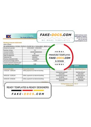 Pakistan The Bank of Khyber bank proof of address statement template in Word and PDF format, .doc and .pdf format