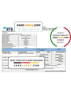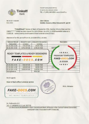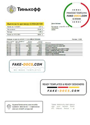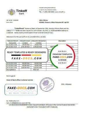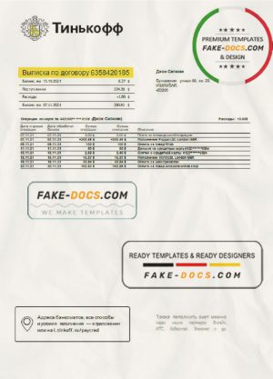 Russia Tinkoff bank proof of address statement template in Word and PDF format (.doc and .pdf)