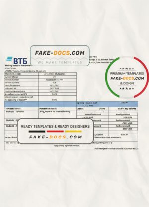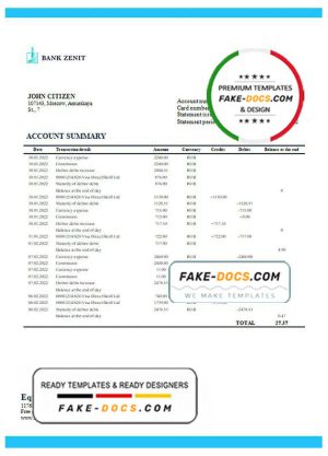 Russia Zenit Bank bank proof of address statement template in Word and PDF format