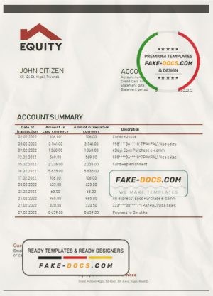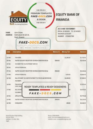 Rwanda Equity Bank of Rwanda proof of address bank statement template in Word and PDF format