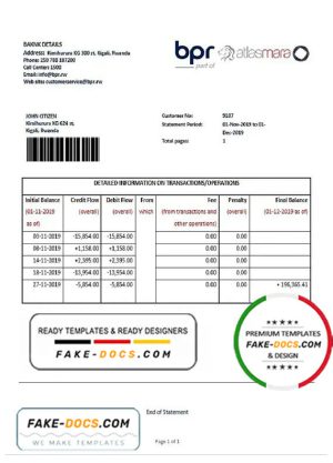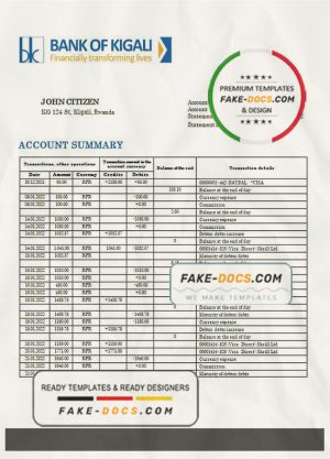 Rwanda Bank of Kigali bank proof of address statement template in Word and PDF format