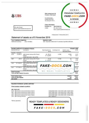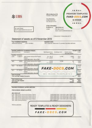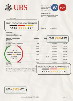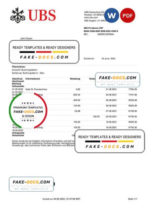 Switzerland UBS bank statement template in Word and PDF format, version 2