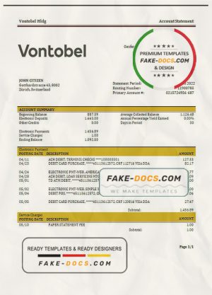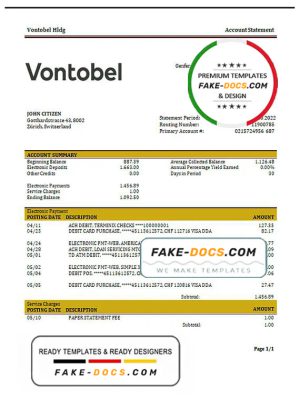 Switzerland Vontobel Bank statement template, Word and PDF format (.doc and .pdf)
