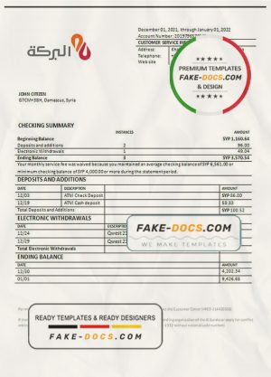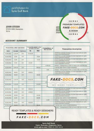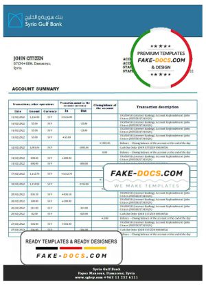 Syria Gulf Bank proof of address statement template in Word and PDF format, .doc and .pdf format