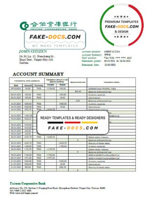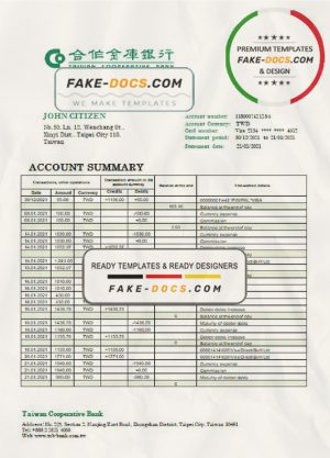Taiwan Cooperative Bank statement template in Word and PDF format, good for address prove