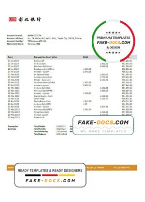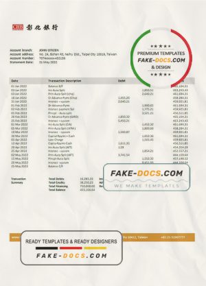 Taiwan Chang Hwa bank statement template in Word and PDF format, good for address prove