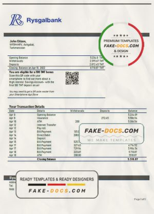 Turkmenistan Rysgal bank statement template, Word and PDF format (.doc and .pdf)