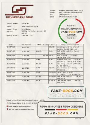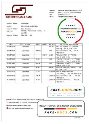 Turkmenistan Turkmenbashi Bank statement template, Word and PDF format (.doc and .pdf)