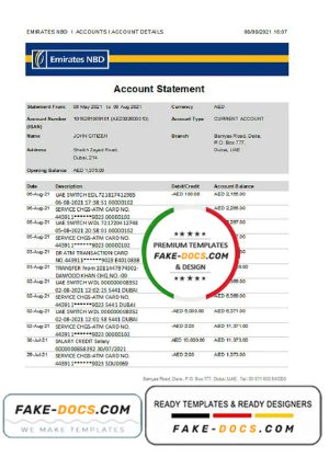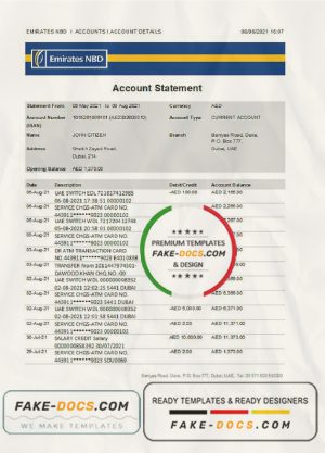 UAE Dubai NBD bank statement Word and PDF template, version 2