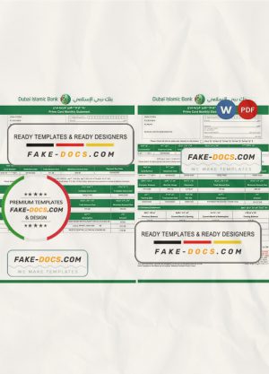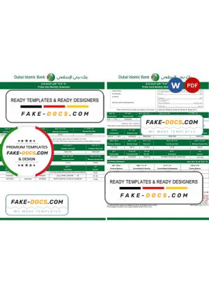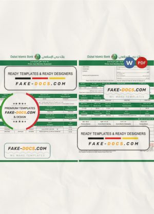 UAE Dubai Islamic bank statement template in Word and PDF format in Arabic language, 3 pages