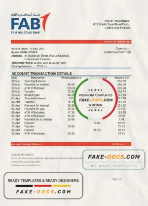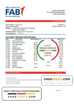 UAE First Abu Dhabi bank statement easy to fill template in Word and PDF format