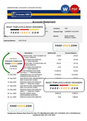 UAE Dubai Emirates NBD bank proof of address statement template in Word and PDF format