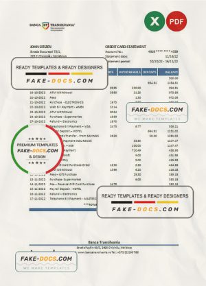 Moldova Banca Transilvania bank statement Excel and PDF template