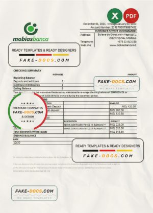 Moldova Mobiasbanca bank statement template in Word and PDF format