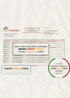 Moldova Procredit bank statement easy to fill template in .xls and .pdf file format