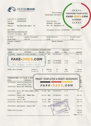 Moldova Victoriabank proof of address statement template in Word and PDF format