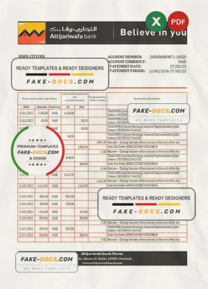 Morocco Attijariwafa bank statement template in Word and PDF format, good for address prove