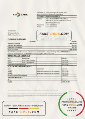 Morocco CIH bank proof of address statement template in Word and PDF format