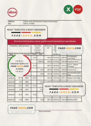 Morocco Credit Agricole Bank statement template in Excel and PDF format