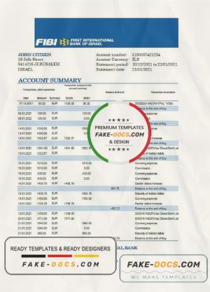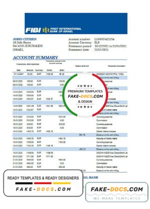 Israel First International Bank of Israel proof of address bank statement template in Word and PDF format