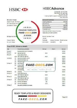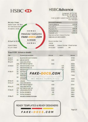 Israel HSBC proof of address bank statement template in Word and PDF format