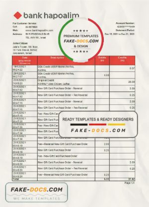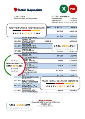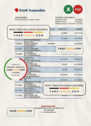 Israel Hapoalim proof of address bank statement template in Word and PDF format