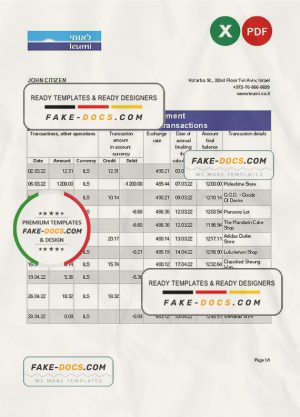 Israel Leumi bank statement Excel and PDF template