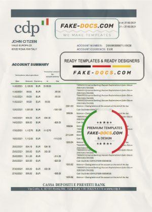 Italy Cassa Depositi e Prestiti bank statement template in Word and PDF format, fully editable