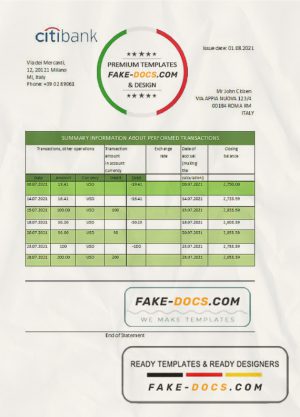 Italy Citibank statement template in .doc and .pdf format, fully editable