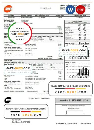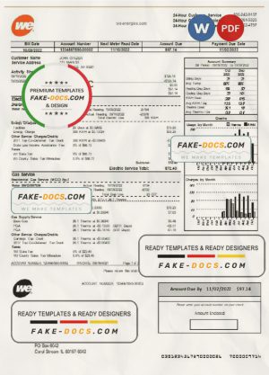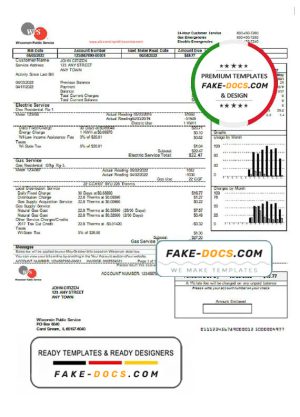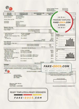 USA Wisconsin We Energies electricity utility bill template in Word and PDF format