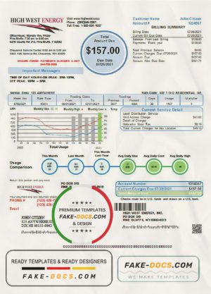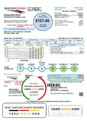 USA Wyoming High West Energy utility bill in Word and PDF format, version 2