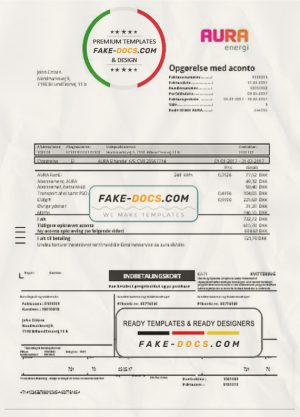 Denmark AURA Energi utility bill template in Word and PDF format