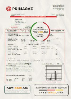 Denmark Primagaz Denmark gas utility bill template in Word and PDF format