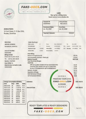 Dominica Electricity Services Limited electricity utility bill template in Word and PDF format