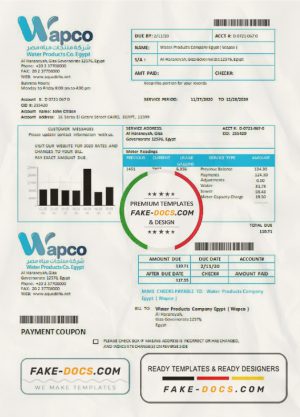 Egypt Water Products Company Egypt (Wapco) utility bill template in Word and PDF format