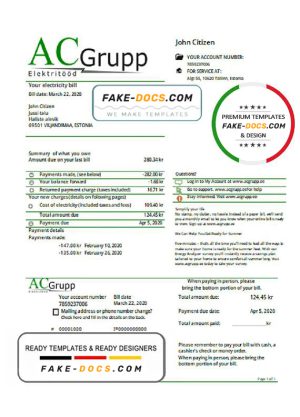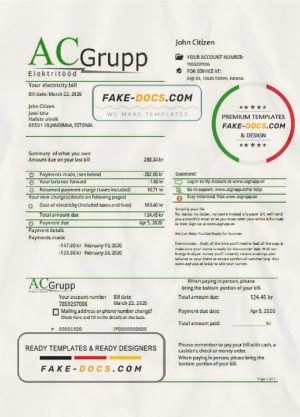 Estonia AC Grupp OÜ electricity utility bill template in Word and PDF format