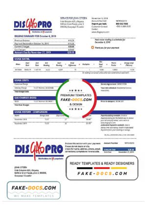 Ecuador Disgaspro gas utility bill template in Word and PDF format