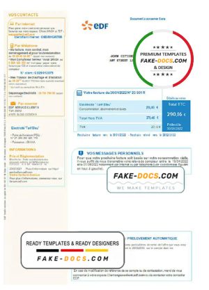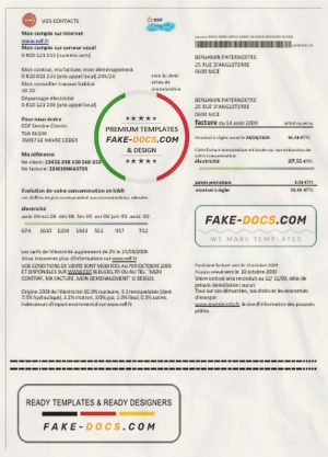 France electricity EDF utility bill template Word and PDF format, good for address prove