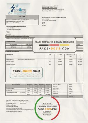 France Energies & Services Régie Municipal d’ Electricité Sarre-Union electricity utility bill template in Word and PDF format, fully editable