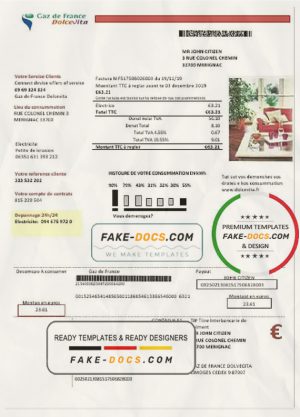 France Gaz de France Dolcevita utility bill template in Word and PDF format