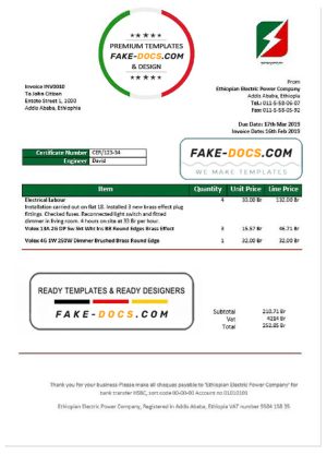 Ethiopia Ethiopian Electric Power Company electricity utility bill template in Word and PDF format