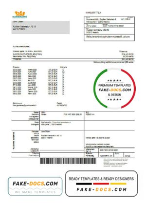 Finland Oomi Palvelut Oy electricity utility bill template in Word and PDF format